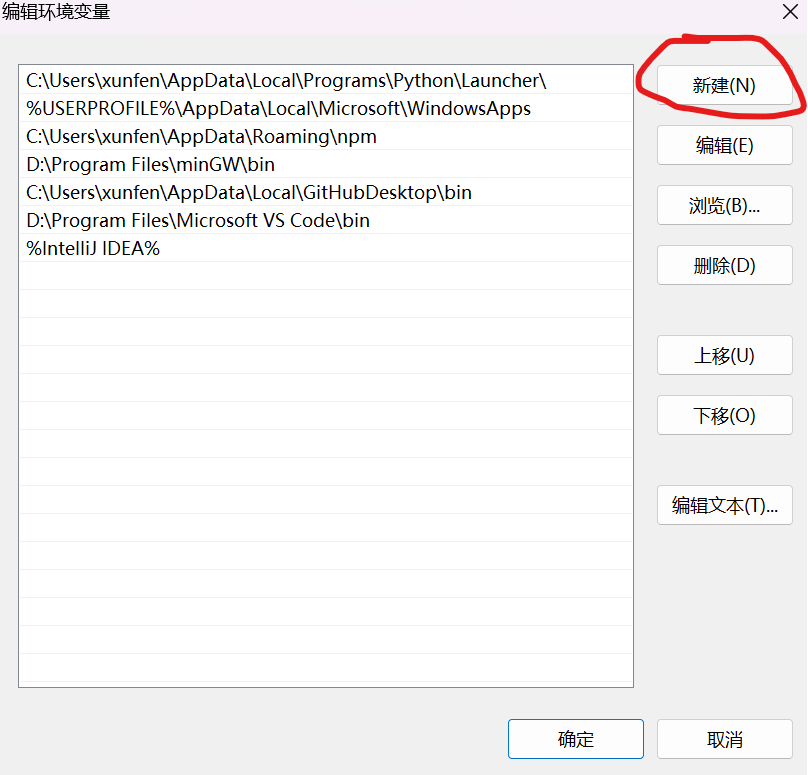 我们先选择上面的Path点上面的编辑,点击“新建”
