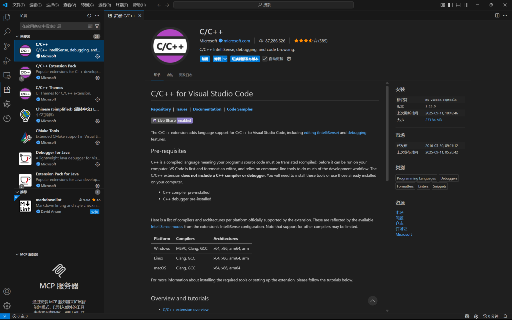 引言:最近Java的集训营结束了又得拿上痛苦的C了,但是一直习惯于VSCode敲代码,VSCode作为一款轻量化编译器好处多多,但是可恶的是一切环境都要自己配置,不想动手只能去碰他的兄弟产品VS,但是VS的占用相对较大,比较吃性能,而且最近一个长期支持版是2022(听说2026版快出来了),而且VS的字体看得实在是难受,操作感觉不如VSCode(个人直观感受,勿喷),遂查阅大量资料,成功在VSCode上完成配置C/C++环境,故著此篇作为记忆存档